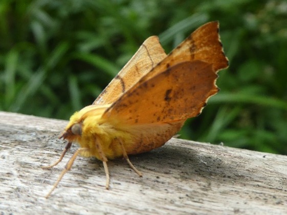 (Ennomos alniaria) On the evening of 13 August 2021, we ran three Robinson Mercury Vapour (125w) moth traps among mixed woodland, meadows, chalk stream and ponds. We recorded over 100 species among them this attractive Canary-shouldered Thorn. Data has been entered into iRecord and passed to the Sussex Biodiversity Record Centre. This moth is present in Sussex from July to early October. The larvae feed on Birch, Alder, Sallow and Lime all found at Botany Bay.